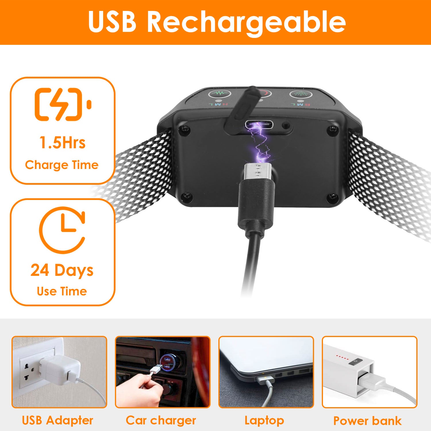 *USB Rechargeable & Long-lasting Dog Collar*: